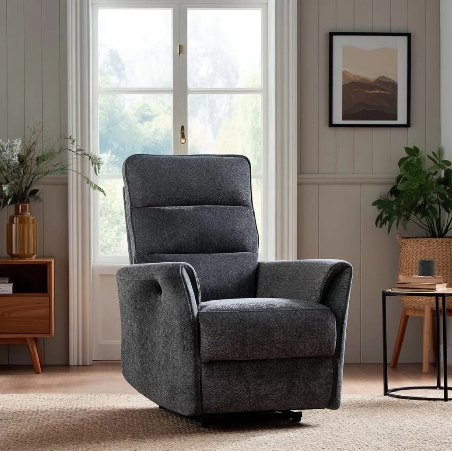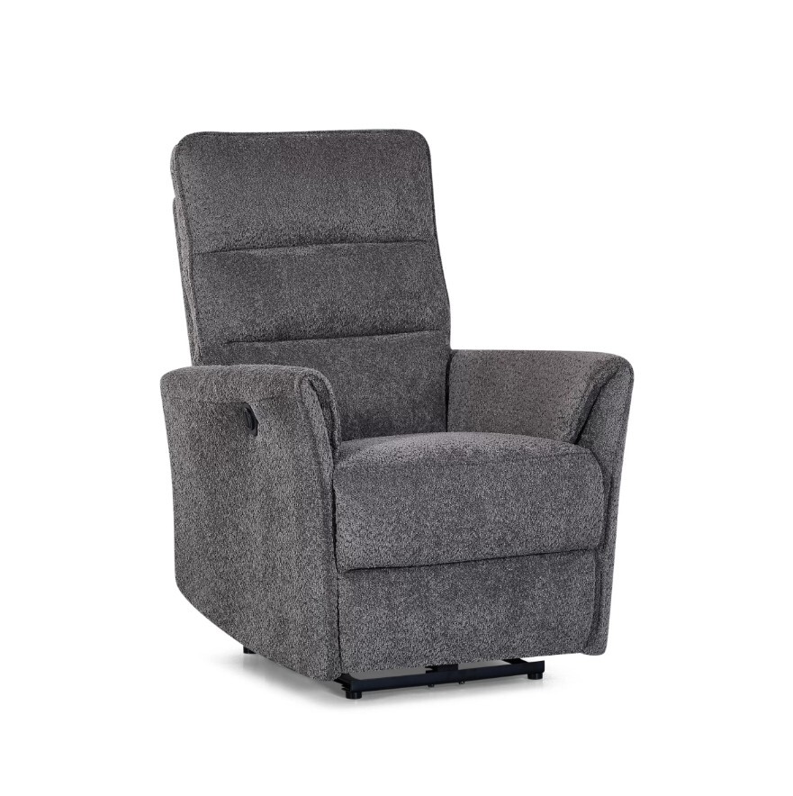 Lumo sähkörecliner on tuoli, jossa yhdistyy rentoutuminen ja moderni tyylikkyys. Pehmeä ja kutsuva kangas tuntuu miellyttävältä heti istuessa, ja nappia painamalla selkänoja kallistuu ja jalkatuki nousee sopivaan asentoon.