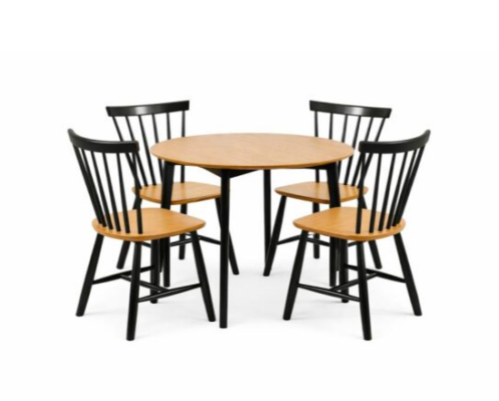 Siro Lumme ruokaryhmä on ajattoman tyylikäs. Pöydän halkaisija on 110 cm ja ympärille mahtuu 4 tuolia. Voit valita kahdesta väriyhdistelmästä itsellesi sopivan kokonaisuuden. Mystinen musta yhdistettynä tammiviilu kanteen tai raikas valkoinen samalla tammisävyisellä kannella. Tuolit tulevat valmiiksi tehtaalla kasattuna.
